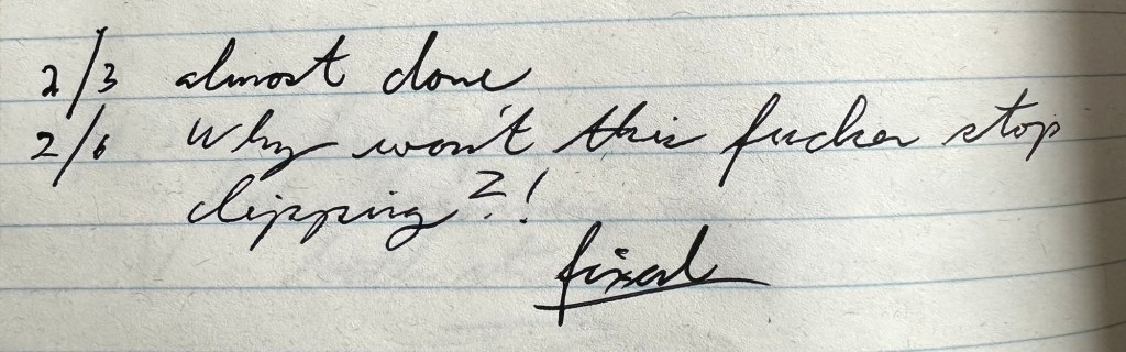 I started it in February 2024 when all the material I had consisted of field recordings and random sound design experiments. Much of that work was stream of consciousness ramblings and screaming into the void. More on the void screaming in another post. Suffice it to say it wasn’t much of an album then.